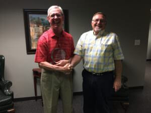 Kirk Johnston was recognized for 20 years of service by Smith Dray Line. Kirk, seen here on the left, was presented with this recognition by Scott Dickerson.